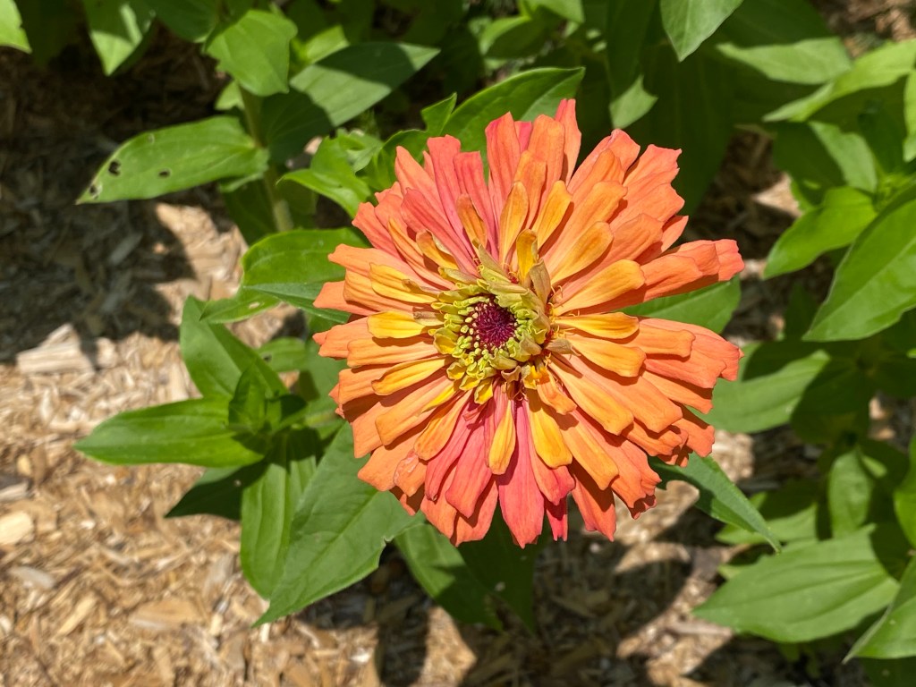 July 6, 2020, pandemic lockdown, returning from a walk around the empty streets, when I noticed an unusual flower in a patch of zinnias beside my driveway. Pink and yellow suffused the petals, like watercolors blending together into a charming peachy color. As a commercial cut flower grower, I have grown hundreds of thousands of zinnias in my career, so I knew instantly that this flower was unusual and special.