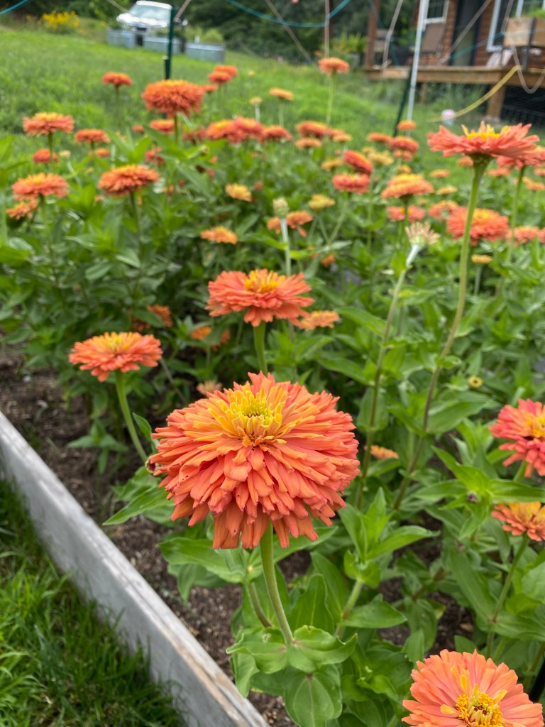 At that point, several people I respect encouraged me to bring the variety to market because it appeared to be stable. I had some trepidation — what if some foreign pollen had been accidentally brought to Riverdell? I drove the surrounding streets, looking for zinnias in gardens but didn’t see any within a quarter mile. A Google map shows dense forest in every direction around the garden. The likelihood of accidental pollination seemed small, so I decided to go for it.